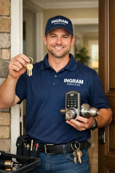 At Team Ingram Services, we specialize in residential locksmith services, providing reliable and efficient solutions to keep your home secure. We handle everything from rekeying locks and full lock changes to opening doors during lockouts with care to avoid damage. Our services also include key extraction, lock repairs, and door hinge adjustments to ensure your doors function smoothly and securely. We work closely with homeowners, property managers, and Airbnb hosts, offering quick turnaround times and dependable service to keep properties accessible and protected. Our focus is on delivering quality workmanship, fast response, and attention to detail in every job we take on.